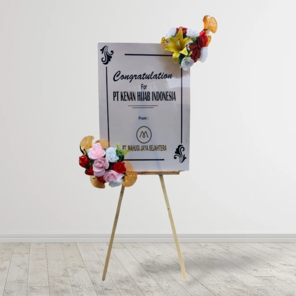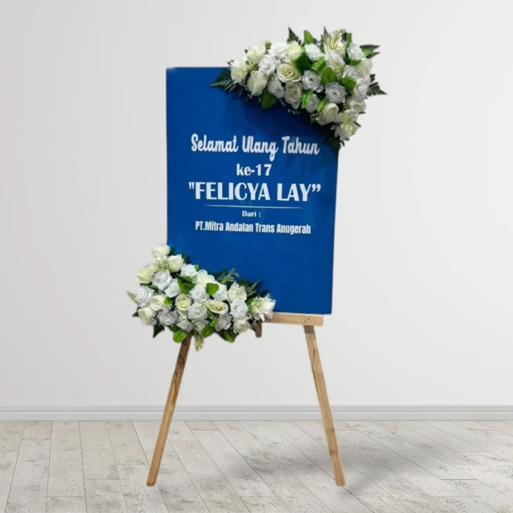 Papan bunga kertas custom desain juga menjadi pilihan favorit bagi pelaku usaha yang sering mengirimkan ucapan selamat atau terima kasih kepada rekan bisnis. Selain hemat, desain yang fleksibel memudahkan branding dengan menambahkan logo perusahaan atau tagline khusus. Untuk kebutuhan pribadi, papan bunga ini dapat dibuat lebih personal dengan foto, ilustrasi, atau pesan khusus yang menyentuh hati.