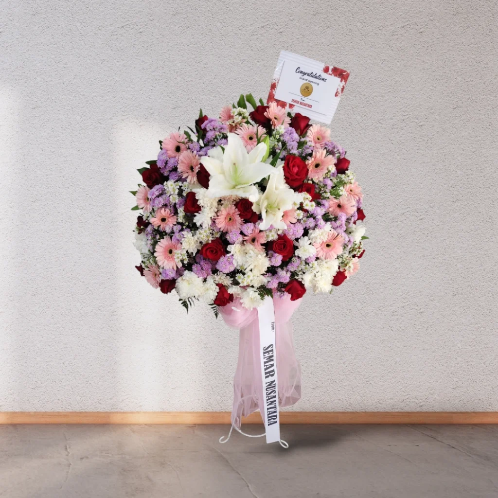 Jual Standing Flower untuk Berbagai Acara di Malang – Toko karangan bunga Bintang Florist Group Malang menyediakan layanan pemesanan “Standing Flower” secara online, ideal untuk memperindah berbagai acara Anda di Malang. Kini, mengirimkan ucapan atau menghias lokasi acara bisa dilakukan dengan sentuhan yang lebih megah dan berkelas. Standing flower menjadi pilihan favorit karena tampilannya yang menawan dan kemampuannya untuk mempercantik suasana dengan instan.