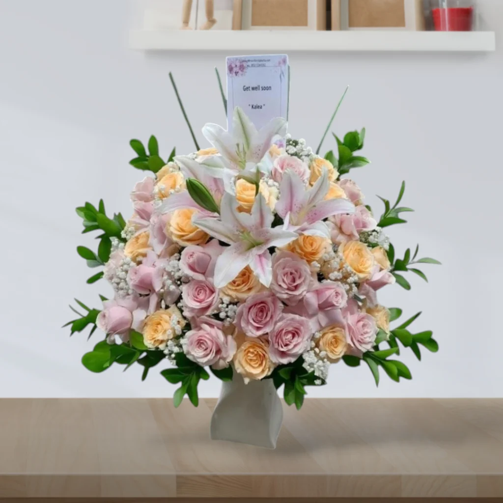• Cocok untuk Segala Acara: Ulang tahun, pernikahan, wisuda, anniversary, pembukaan toko, atau duka cita, bunga meja ini siap menemani momen spesialmu.
