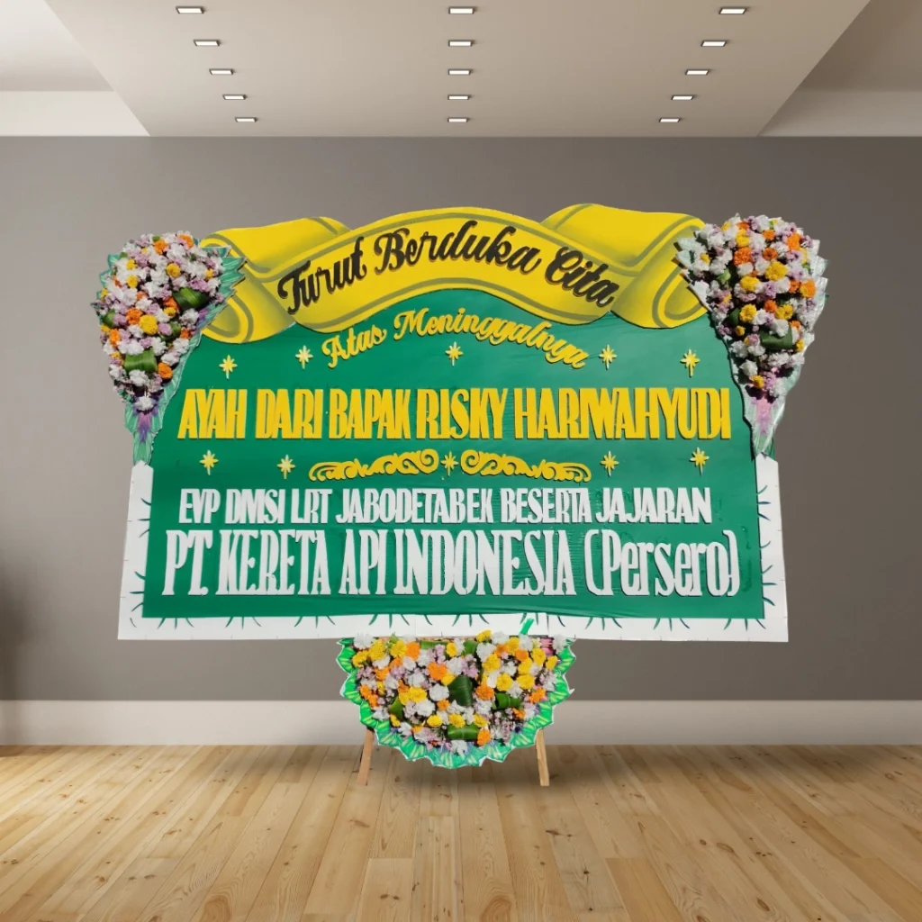 • Desain custom: Tambahkan logo perusahaan, nama almarhum/almarhumah, atau ucapan duka cita yang personal.
