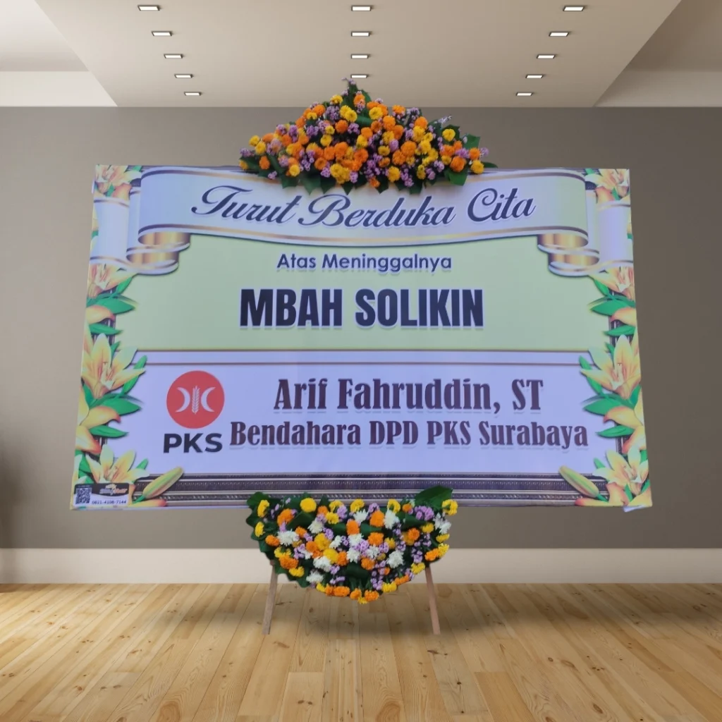 • Desain custom: Tambahkan logo perusahaan, nama almarhum/almarhumah, atau ucapan duka cita yang personal.