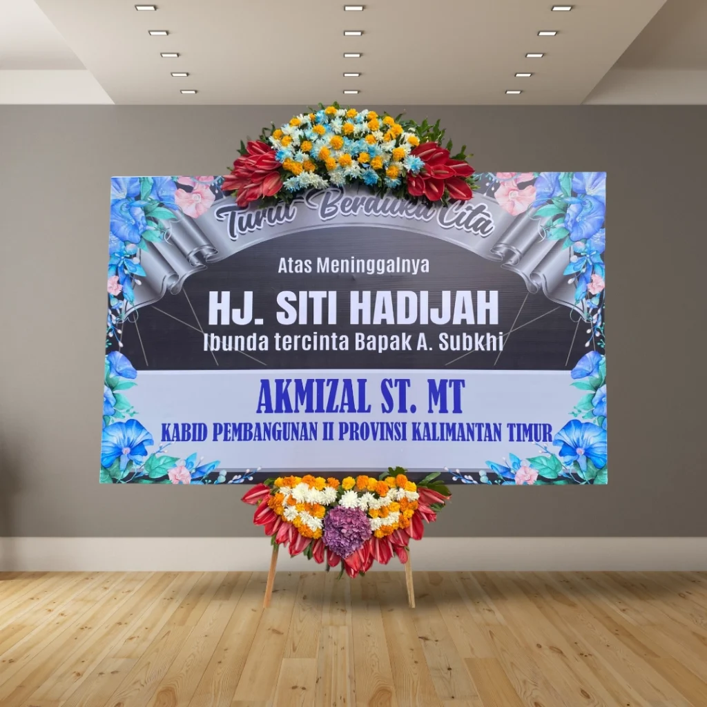• Desain custom: Tambahkan logo perusahaan, nama almarhum/almarhumah, atau ucapan duka cita yang personal.