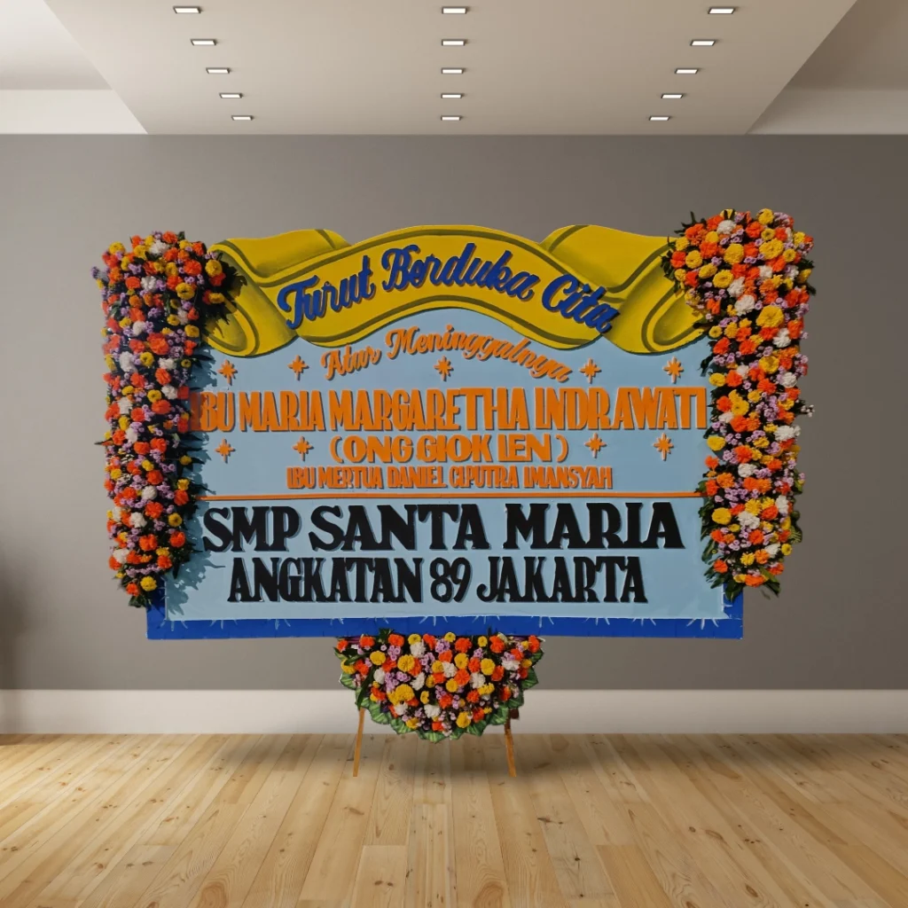 Bingung mencari cara yang tepat untuk menyampaikan rasa duka cita? Karangan bunga papan cetak adalah solusi yang tepat untuk mengungkapkan simpati dan penghormatan terakhir. Dengan desain yang elegan dan personal, karangan bunga ini akan menjadi ungkapan belasungkawa yang tulus.