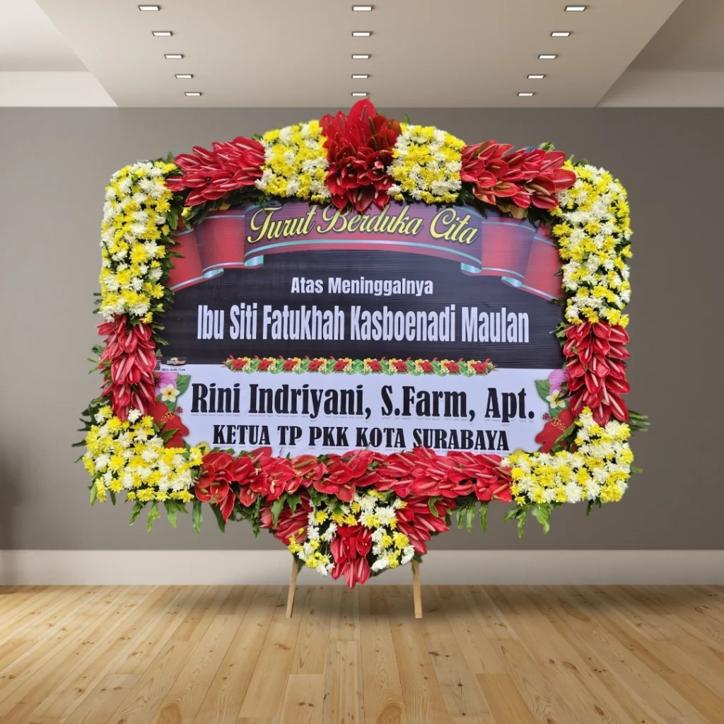Bingung mencari cara yang tepat untuk menyampaikan rasa duka cita? Karangan bunga papan cetak adalah solusi yang tepat untuk mengungkapkan simpati dan penghormatan terakhir. Dengan desain yang elegan dan personal, karangan bunga ini akan menjadi ungkapan belasungkawa yang tulus.