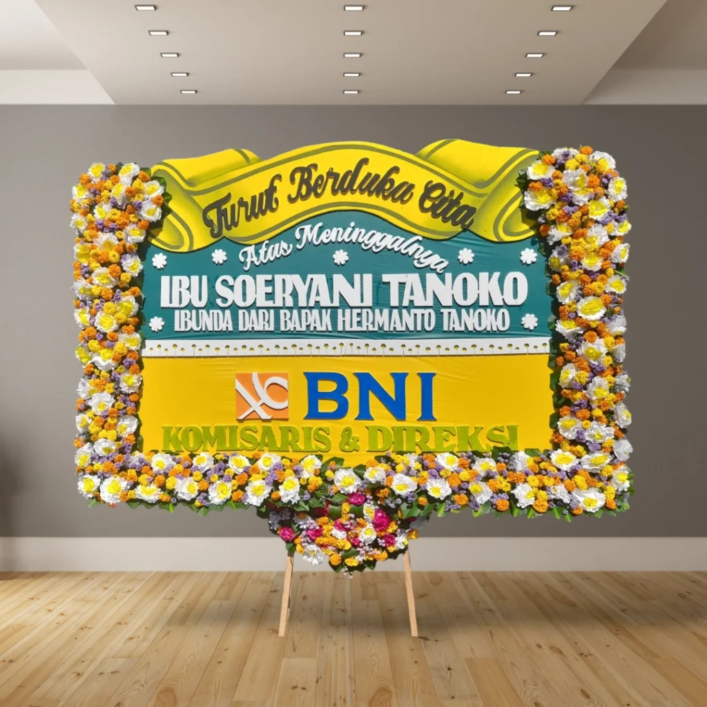 • Desain custom: Tambahkan logo perusahaan, nama almarhum/almarhumah, atau ucapan duka cita yang personal.