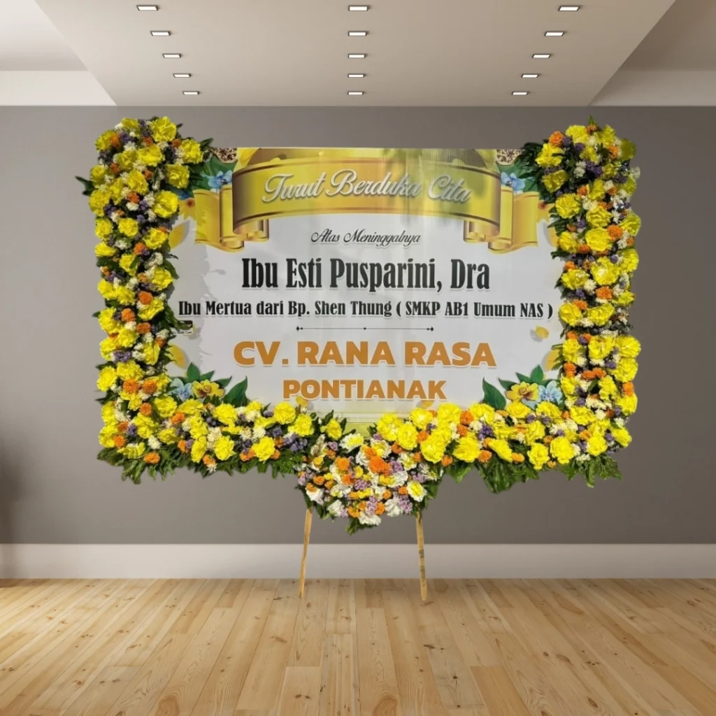 • Desain custom: Tambahkan logo perusahaan, nama almarhum/almarhumah, atau ucapan duka cita yang personal.