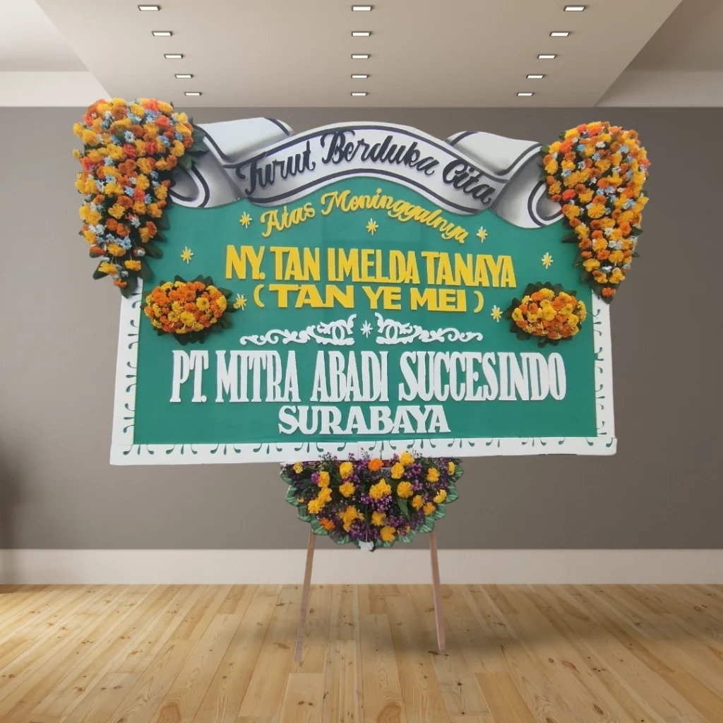 • Desain custom: Tambahkan logo perusahaan, nama almarhum/almarhumah, atau ucapan duka cita yang personal.