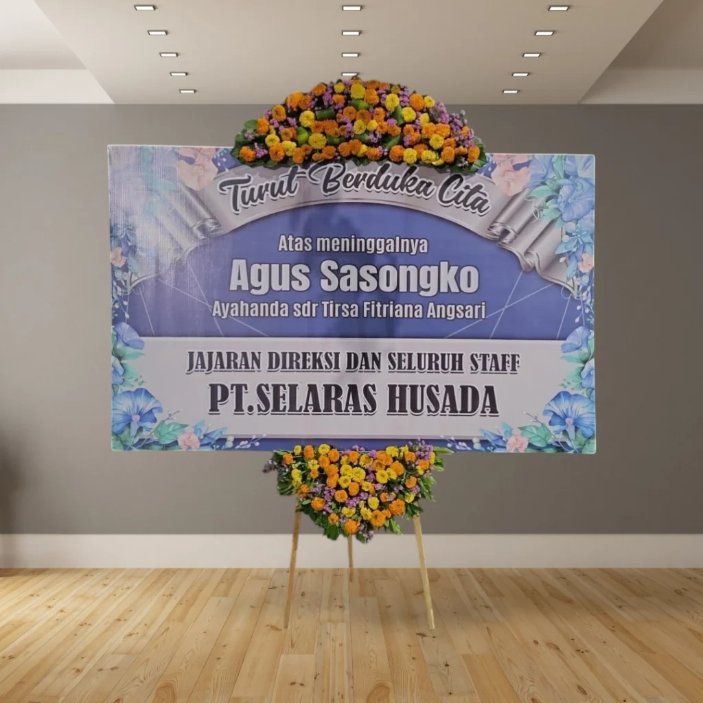 • Desain custom: Tambahkan logo perusahaan, nama almarhum/almarhumah, atau ucapan duka cita yang personal.