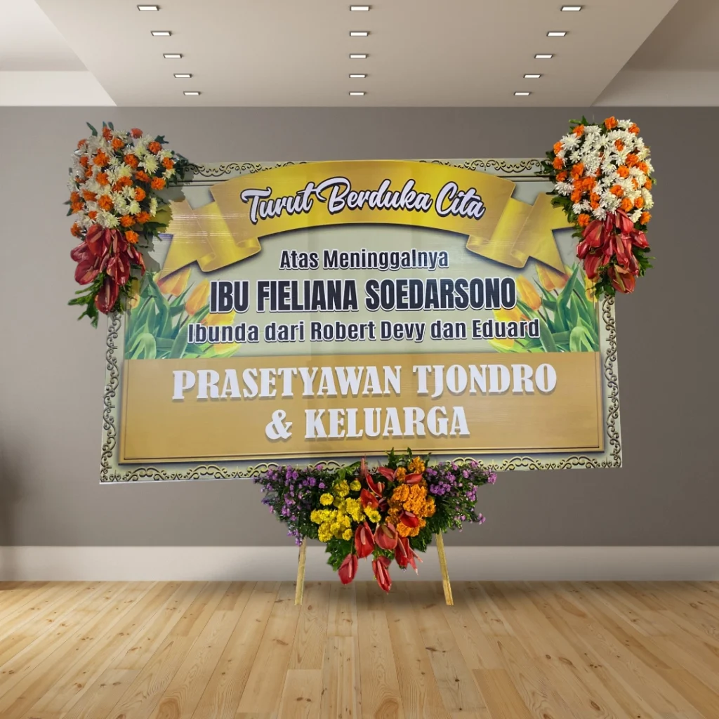 • Desain custom: Tambahkan logo perusahaan, nama almarhum/almarhumah, atau ucapan duka cita yang personal.
