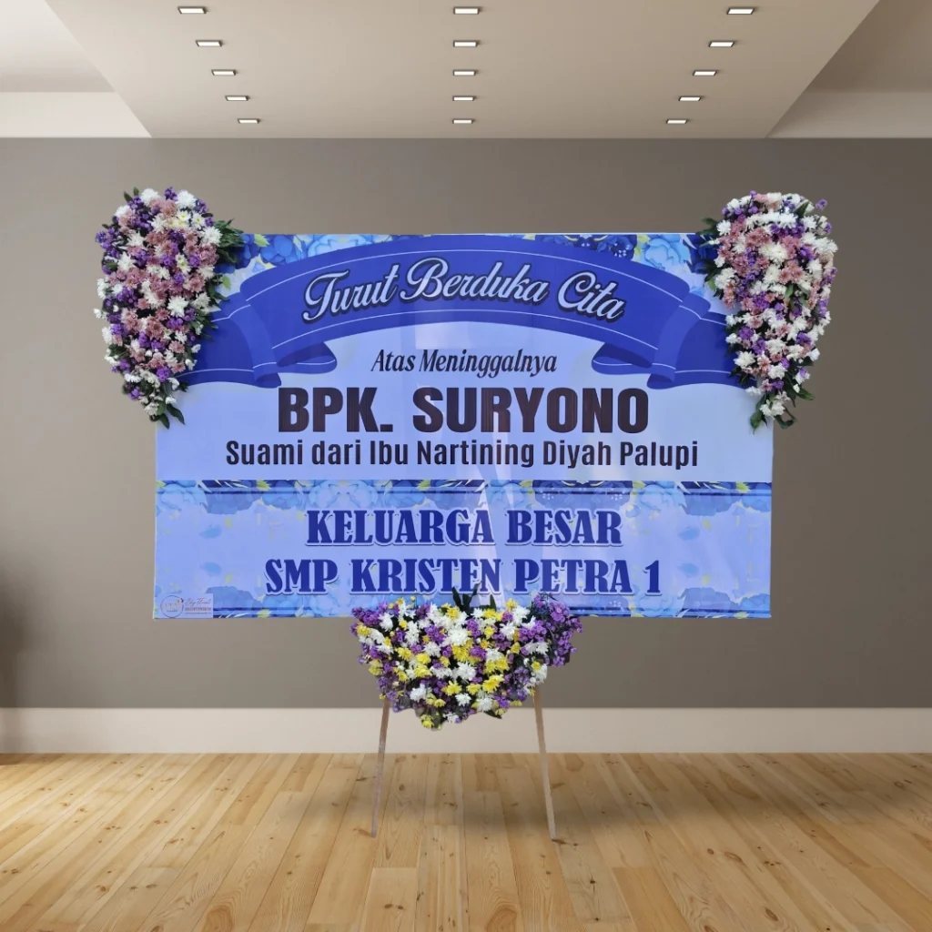 • Desain custom: Tambahkan logo perusahaan, nama almarhum/almarhumah, atau ucapan duka cita yang personal.