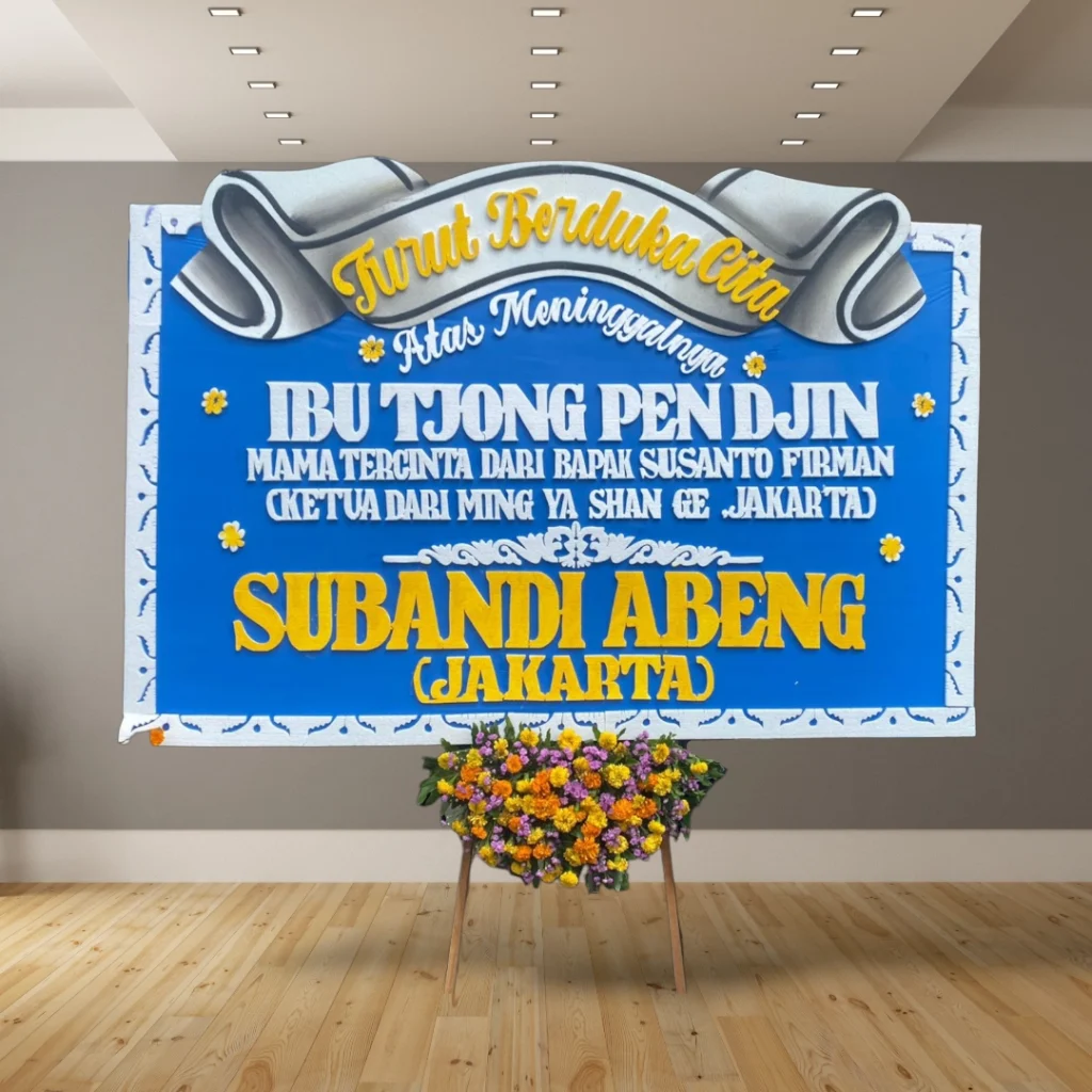 • Desain custom: Tambahkan logo perusahaan, nama almarhum/almarhumah, atau ucapan duka cita yang personal.