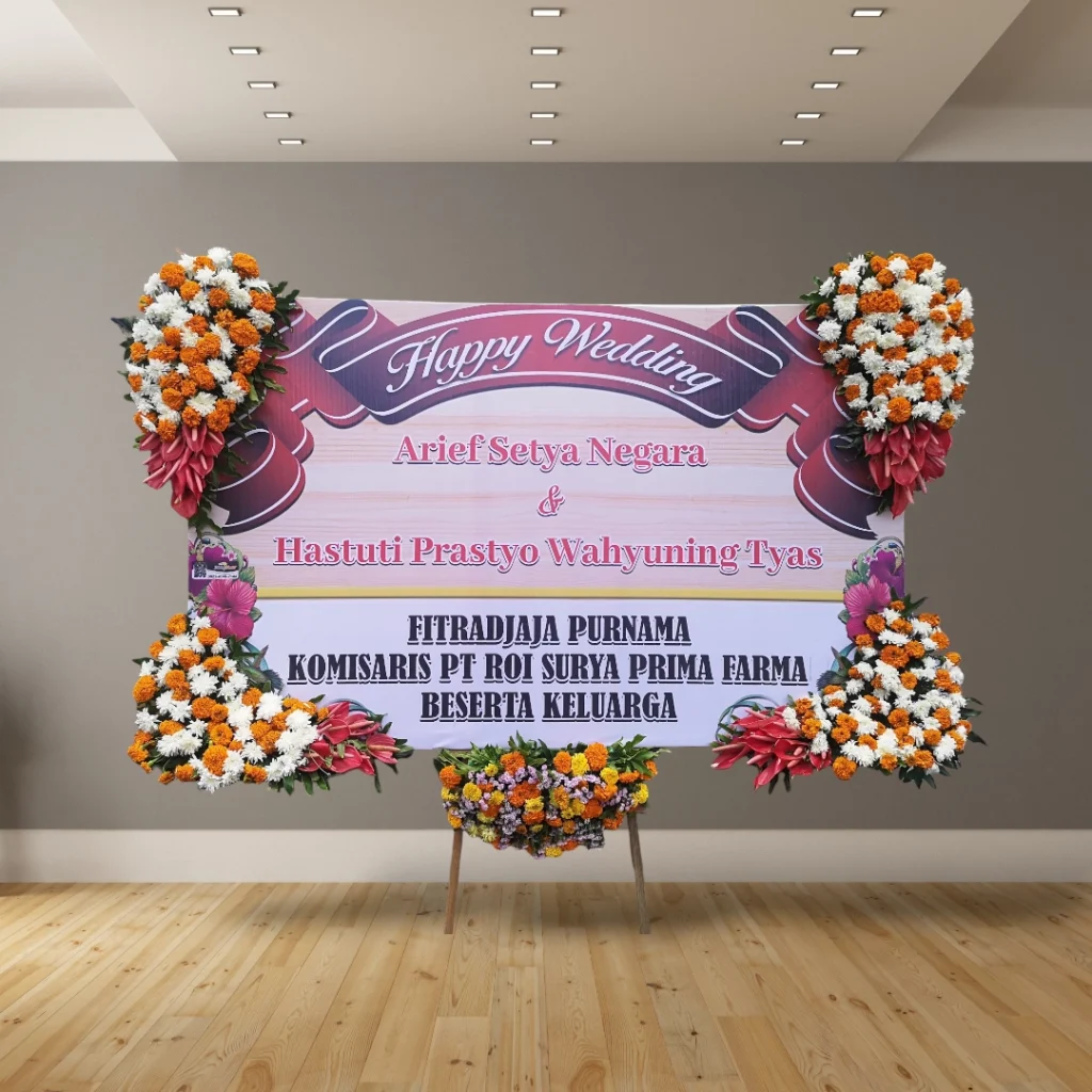 Bingung mencari hadiah pernikahan yang berkesan dan praktis? Karangan bunga papan cetak adalah solusi sempurna untuk menyampaikan ucapan selamat kepada pasangan yang berbahagia. Dengan desain yang elegan dan personal, karangan bunga ini akan menjadi hadiah yang tak terlupakan dan dekorasi yang indah.