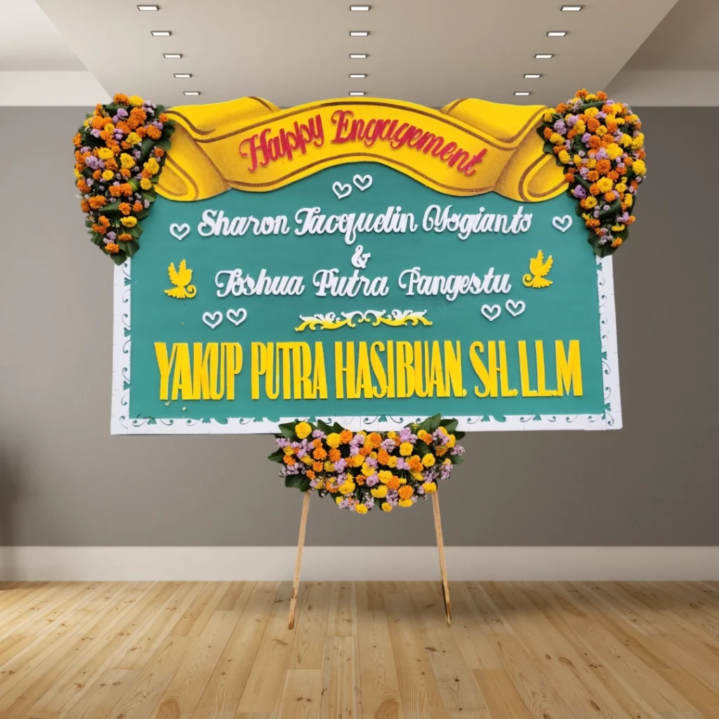 Bingung mencari hadiah pernikahan yang berkesan dan praktis? Karangan bunga papan cetak adalah solusi sempurna untuk menyampaikan ucapan selamat kepada pasangan yang berbahagia. Dengan desain yang elegan dan personal, karangan bunga ini akan menjadi hadiah yang tak terlupakan dan dekorasi yang indah.