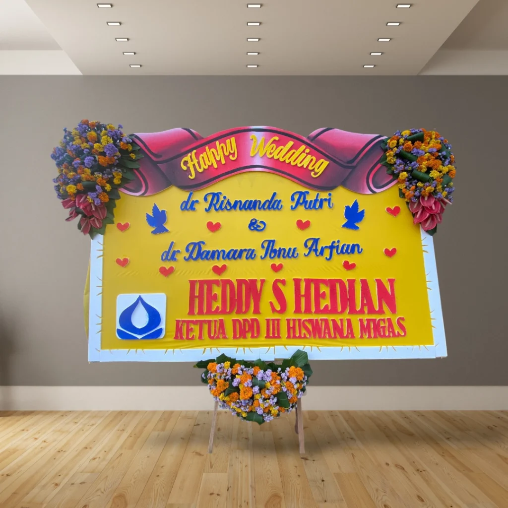 Bingung mencari hadiah pernikahan yang berkesan dan praktis? Karangan bunga papan cetak adalah solusi sempurna untuk menyampaikan ucapan selamat kepada pasangan yang berbahagia. Dengan desain yang elegan dan personal, karangan bunga ini akan menjadi hadiah yang tak terlupakan dan dekorasi yang indah.