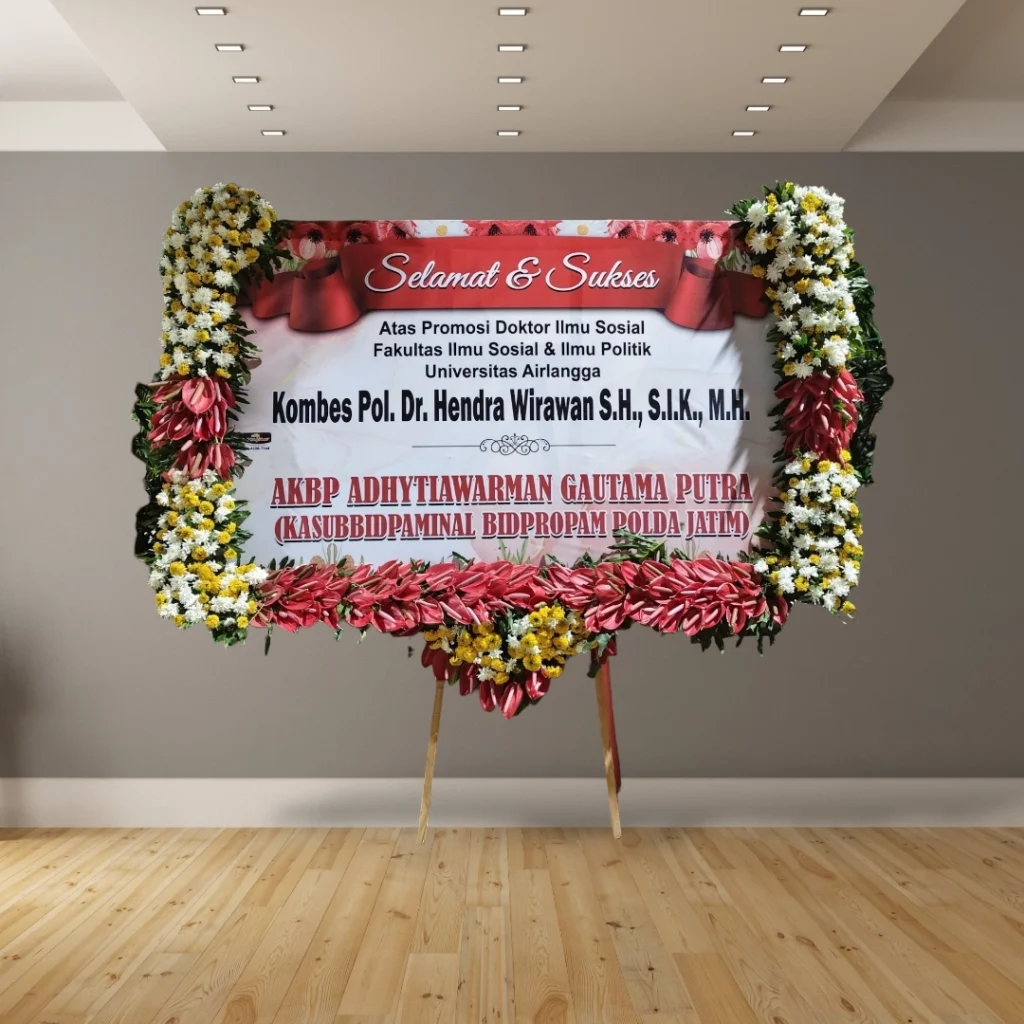 Bingung mencari hadiah untuk acara spesial? Karangan bunga papan cetak adalah solusi sempurna untuk menyampaikan ucapan selamat. Dengan desain elegan dan personal, karangan bunga ini akan menjadi hadiah yang tak terlupakan.