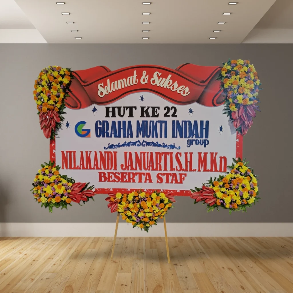 Bingung mencari kado perayaan yang berkesan? Karangan bunga papan gabus adalah solusi sempurna untuk menyampaikan ucapan selamat kepada seseorang yang berbahagia. Dengan desain elegan dan personal, karangan bunga ini akan menjadi hadiah yang tak terlupakan.