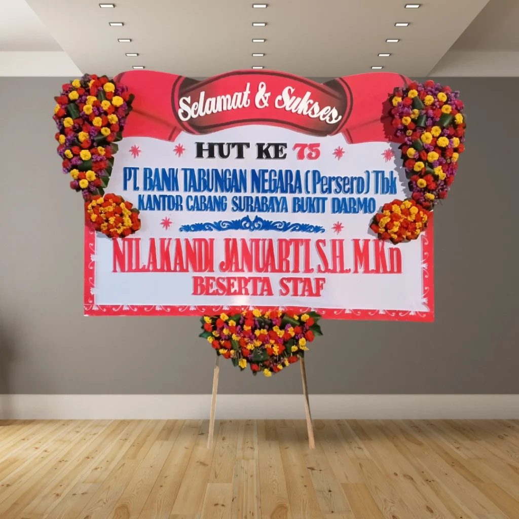 Bingung mencari kado perayaan yang berkesan? Karangan bunga papan gabus adalah solusi sempurna untuk menyampaikan ucapan selamat kepada seseorang yang berbahagia. Dengan desain elegan dan personal, karangan bunga ini akan menjadi hadiah yang tak terlupakan.