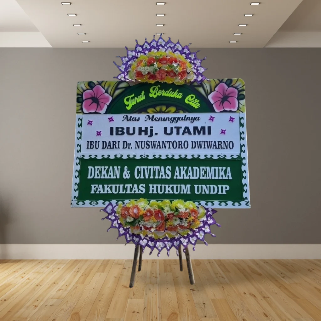 • Desain yang Elegan dan Penuh Hormat: Rangkaian bunga yang indah dengan pilihan warna lembut dan khidmat, menciptakan kesan duka yang mendalam.