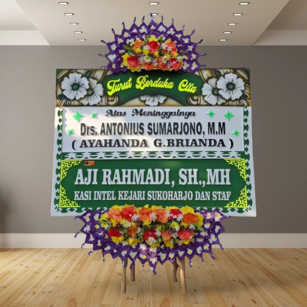 • Desain yang Elegan dan Penuh Hormat: Rangkaian bunga yang indah dengan pilihan warna lembut dan khidmat, menciptakan kesan duka yang mendalam.