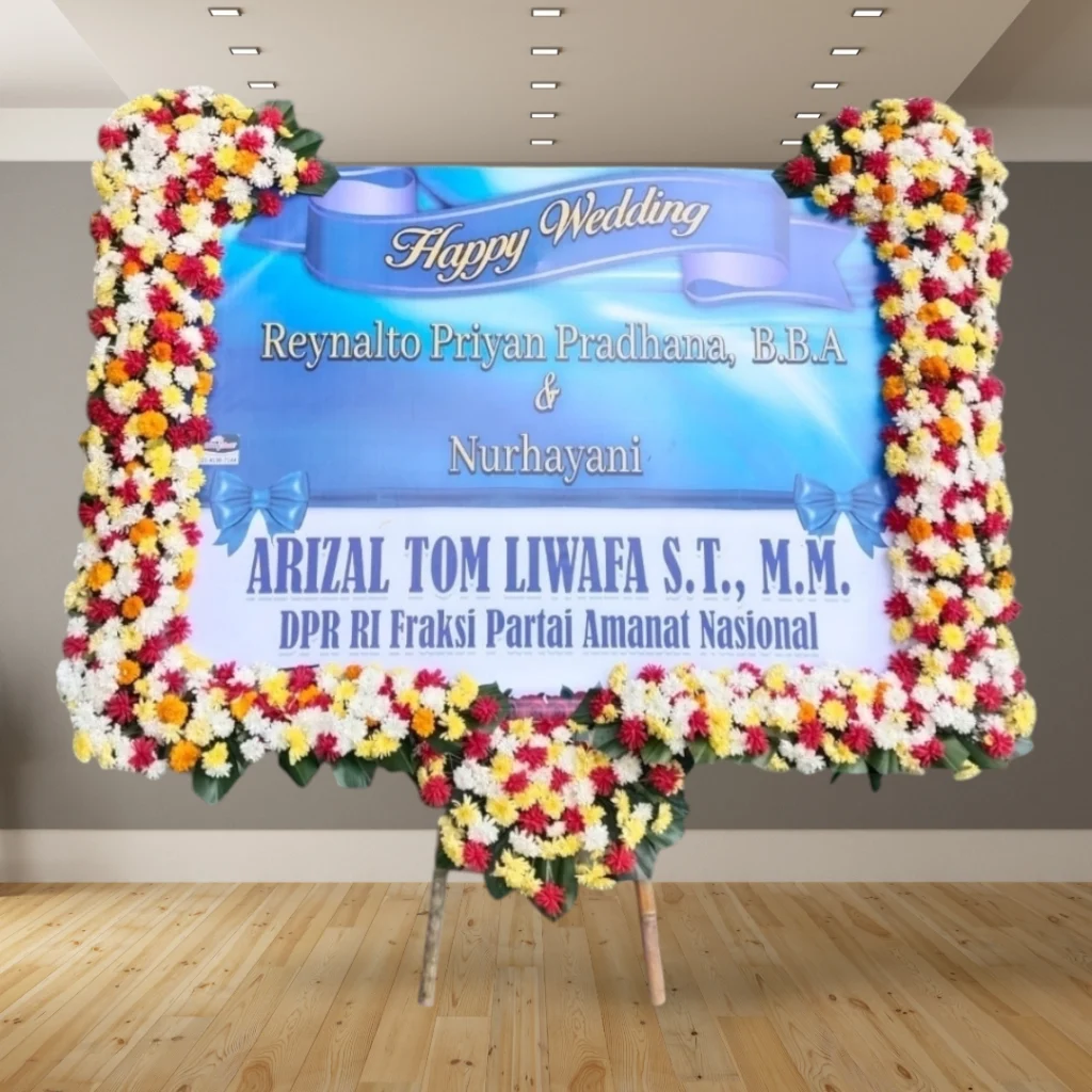 Bingung mencari kado pernikahan yang berkesan? Karangan bunga papan cetak adalah solusi sempurna untuk menyampaikan ucapan selamat kepada pasangan yang berbahagia. Dengan desain elegan dan personal, karangan bunga ini akan menjadi hadiah yang tak terlupakan.