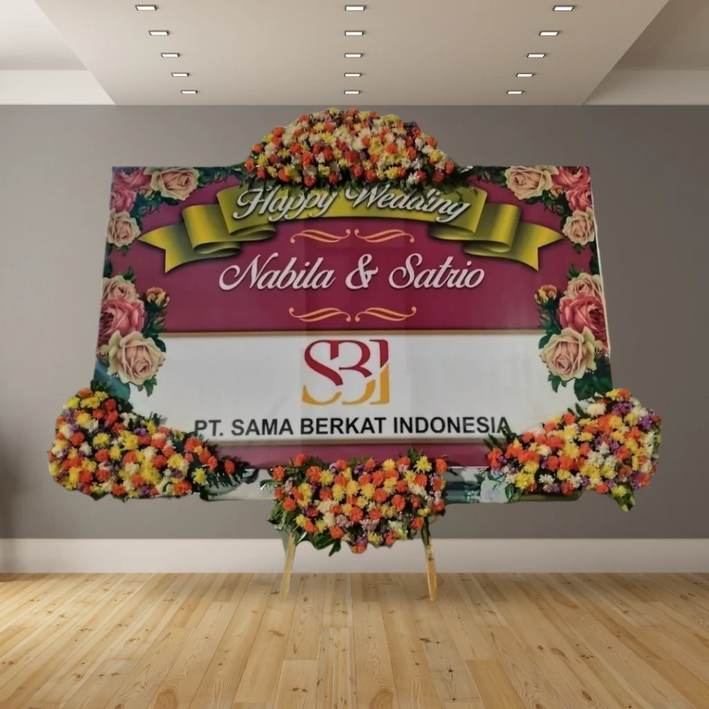 Bingung mencari kado pernikahan yang berkesan? Karangan bunga papan cetak adalah solusi sempurna untuk menyampaikan ucapan selamat kepada pasangan yang berbahagia. Dengan desain elegan dan personal, karangan bunga ini akan menjadi hadiah yang tak terlupakan.