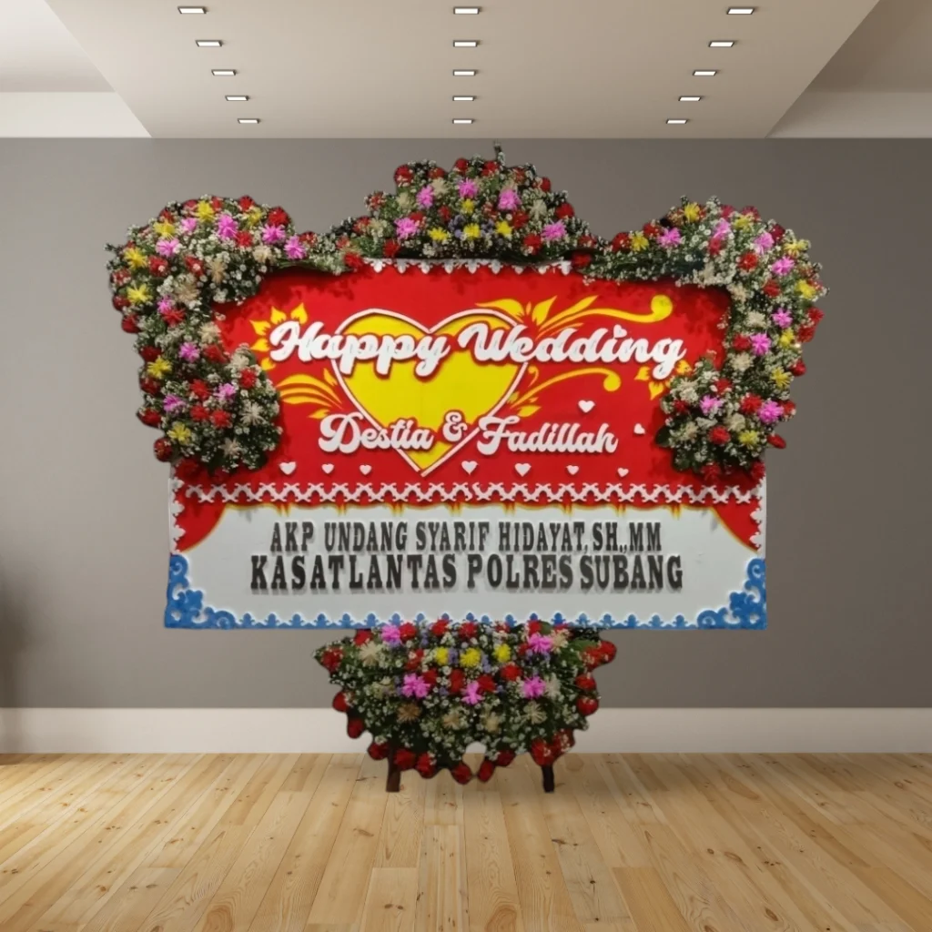 Bingung mencari kado pernikahan yang berkesan? Karangan bunga papan gabus adalah solusi sempurna untuk menyampaikan ucapan selamat kepada pasangan yang berbahagia. Dengan desain elegan dan personal, karangan bunga ini akan menjadi hadiah yang tak terlupakan.