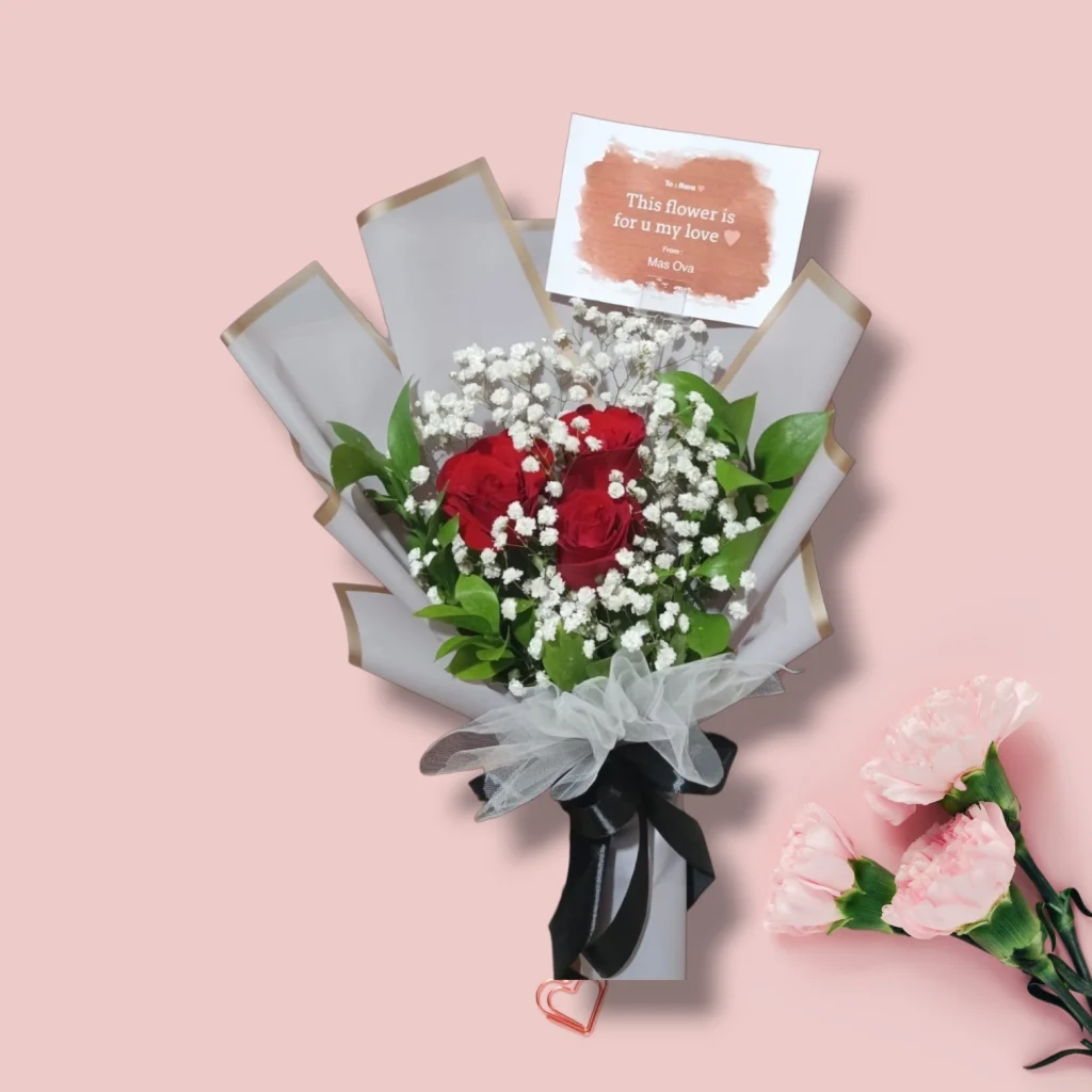 • Buket Mawar Klasik: Ungkapkan cinta dan kasih sayang dengan buket mawar merah yang elegan.