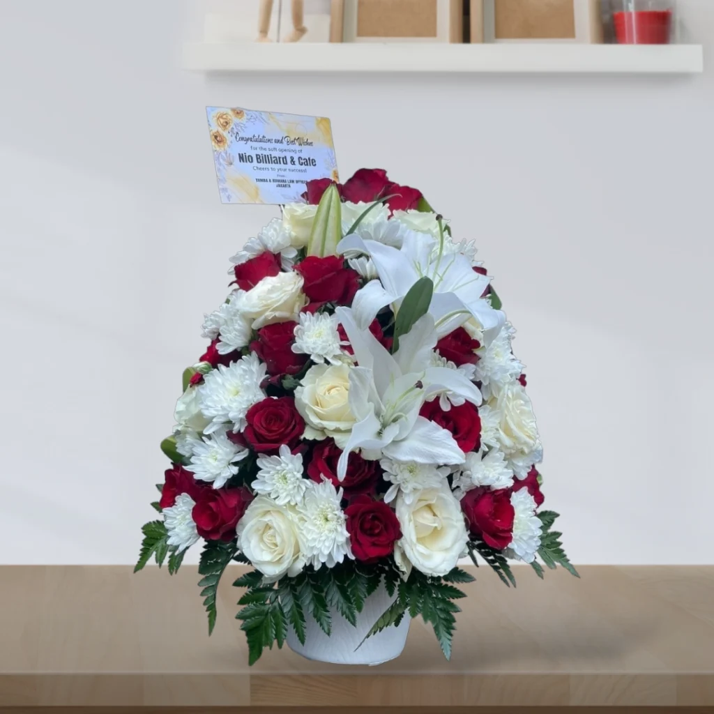 - Bunga Segar Pilihan: Kami menggunakan bunga-bunga segar berkualitas tinggi yang dipilih dengan cermat untuk memastikan keindahan dan ketahanannya.