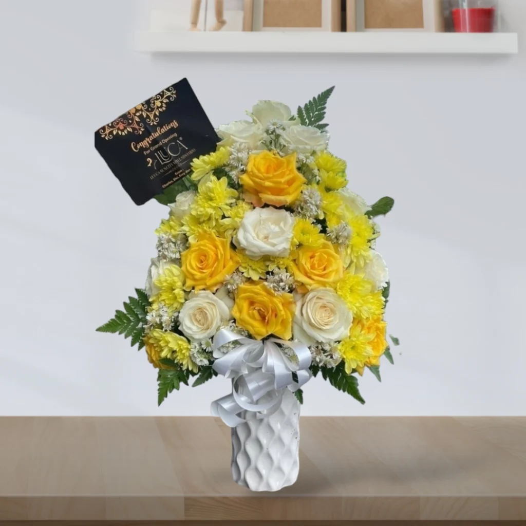 - Bunga Segar Pilihan: Kami menggunakan bunga-bunga segar berkualitas tinggi yang dipilih dengan cermat untuk memastikan keindahan dan ketahanannya.
