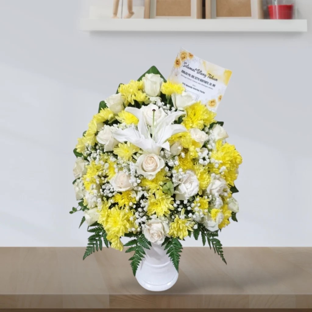 Ingin memberikan hadiah yang indah dan berkesan, atau mempercantik ruangan dengan sentuhan alami? Rangkaian bunga meja segar kami adalah pilihan yang tepat untuk berbagai acara dan suasana. Dengan kombinasi bunga-bunga segar pilihan, rangkaian ini akan membawa keindahan alam ke dalam ruangan Anda.